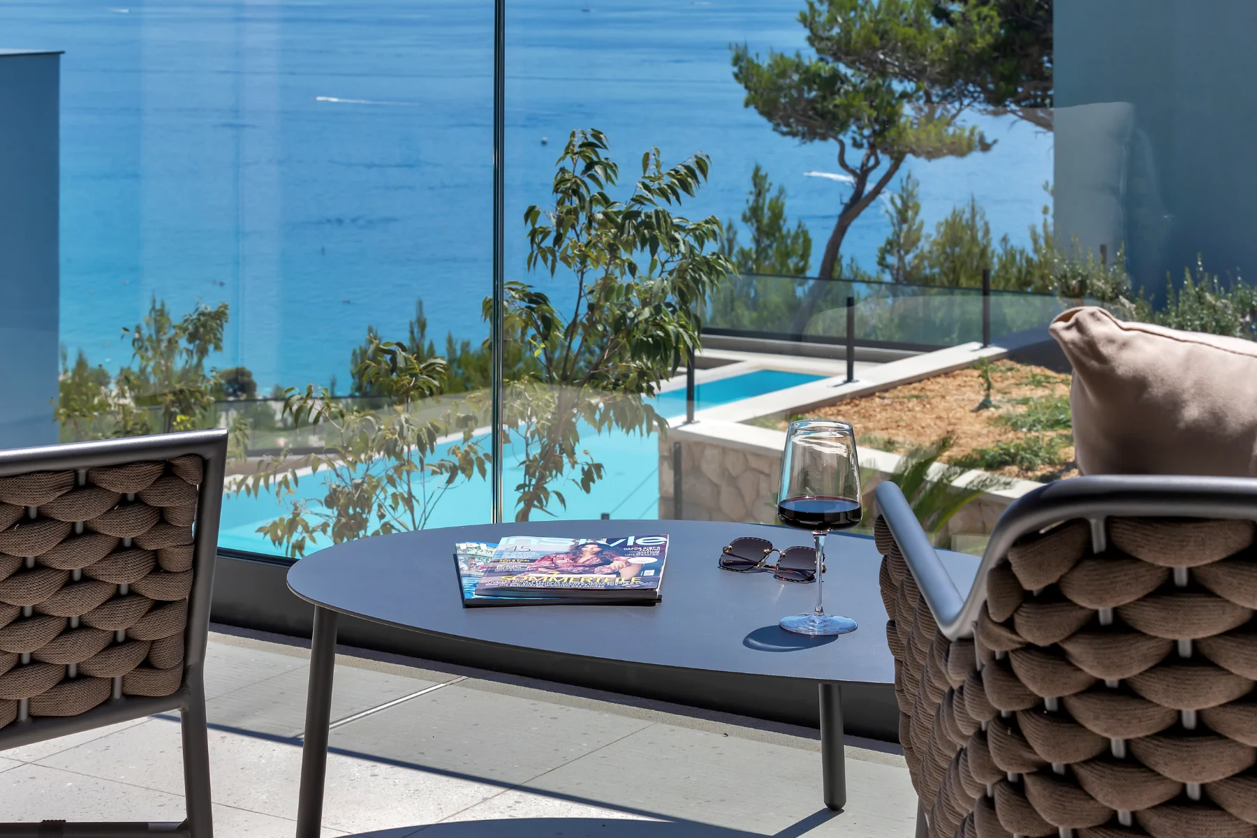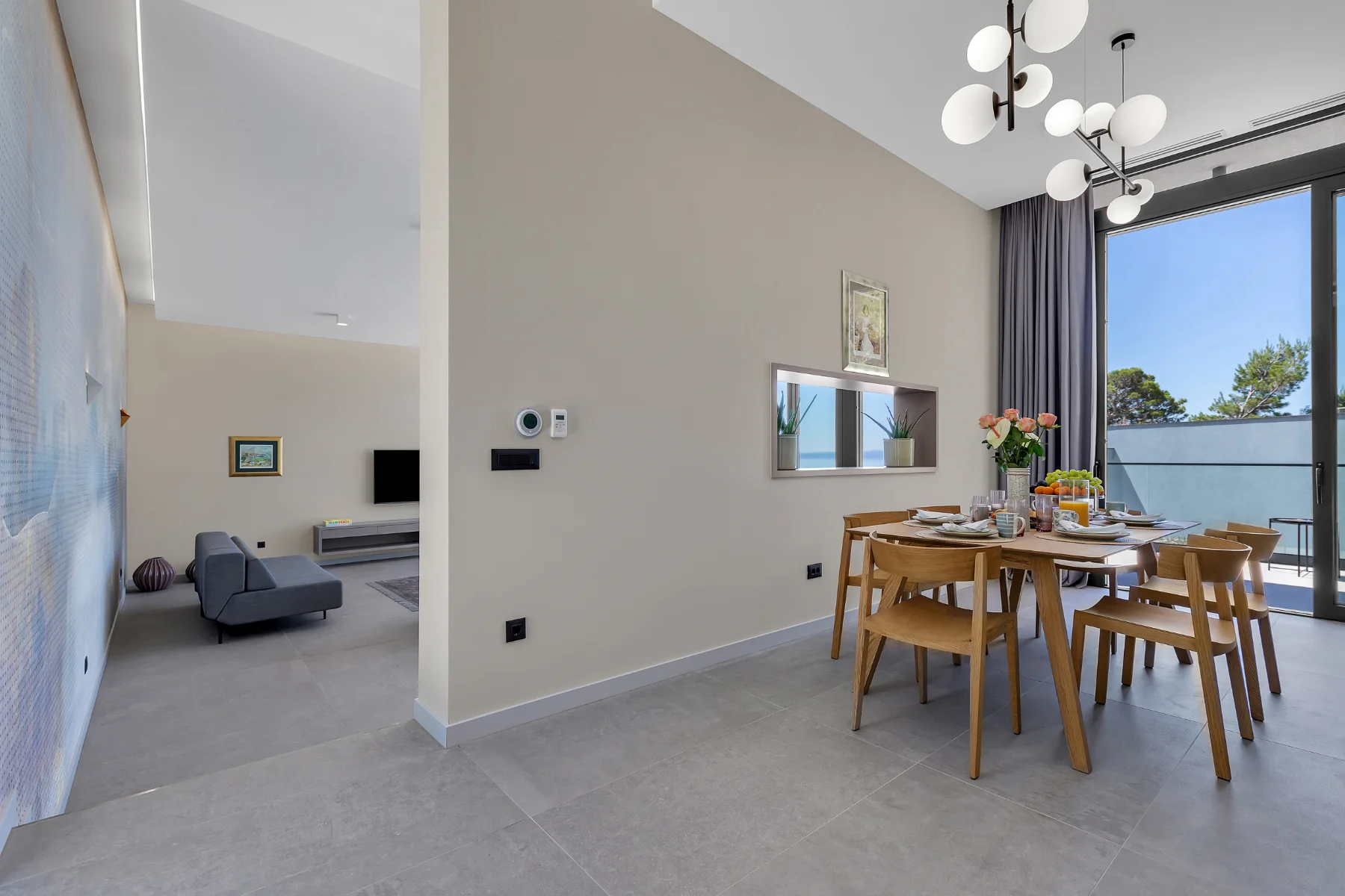 Immerse yourself in the idyllic atmosphere of this luxury pool villa and enjoy the spectacular beauty that surrounds it — from the rugged cliffs of Biokovo Mountain to lush Mediterranean greenery and the sparkling Adriatic Sea. Thoughtfully designed both inside and out, the villa offers a fairy-tale space for full-body and mind relaxation. The open-plan kitchen, dining, and living area invites socializing, while the serene bedrooms provide complete privacy and comfort